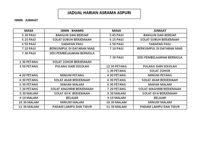 Create beautiful designs with your team. JADUAL HARI ISNIN HINGGA KHAMIS 0530 am Bangun pagi menguruskan diri mengemas dorm. Program Transisi Murid Tahun 1 masih berjalan sehingga 26 Mac 2021 sila bawa alat tulis dan modul transisi SAHAJA.